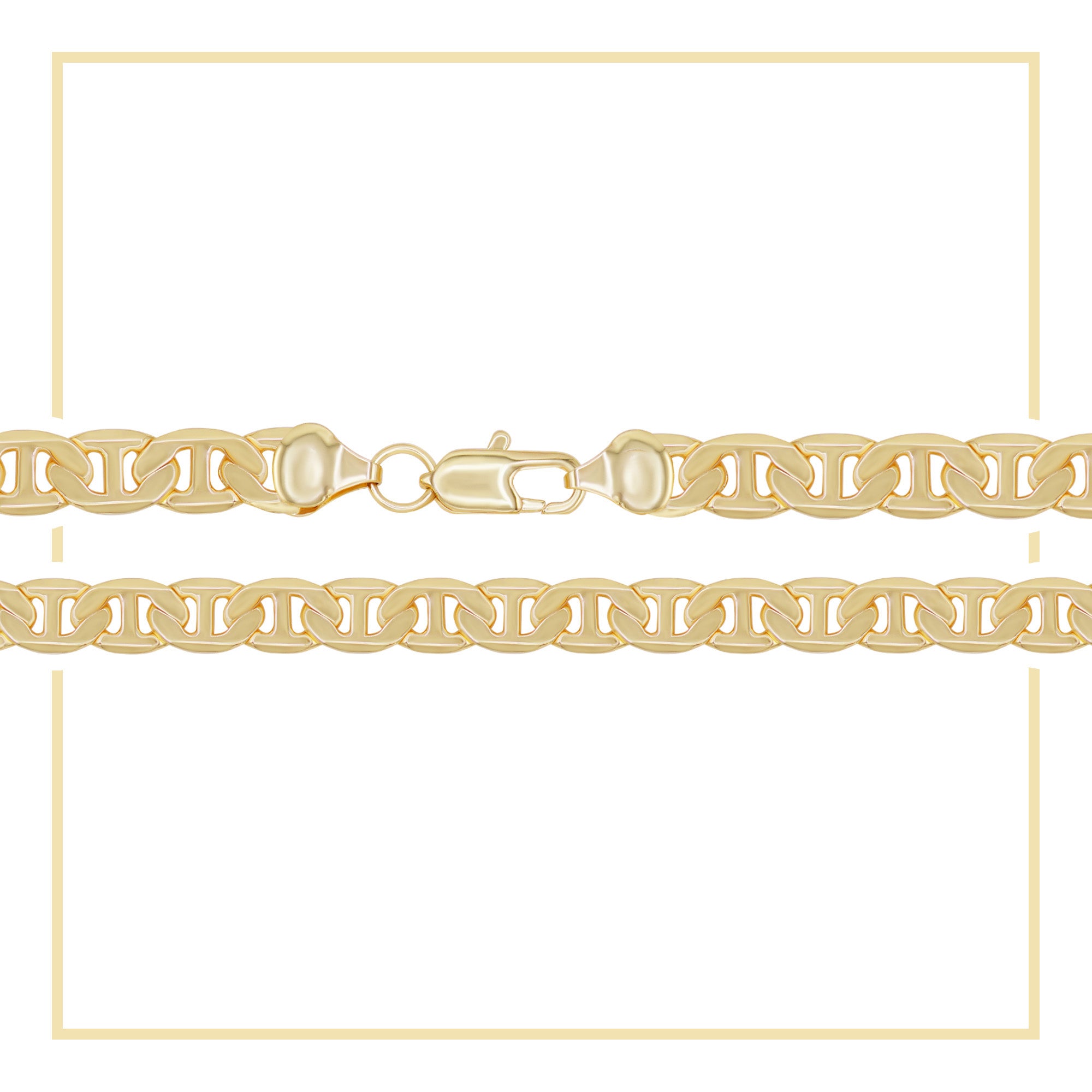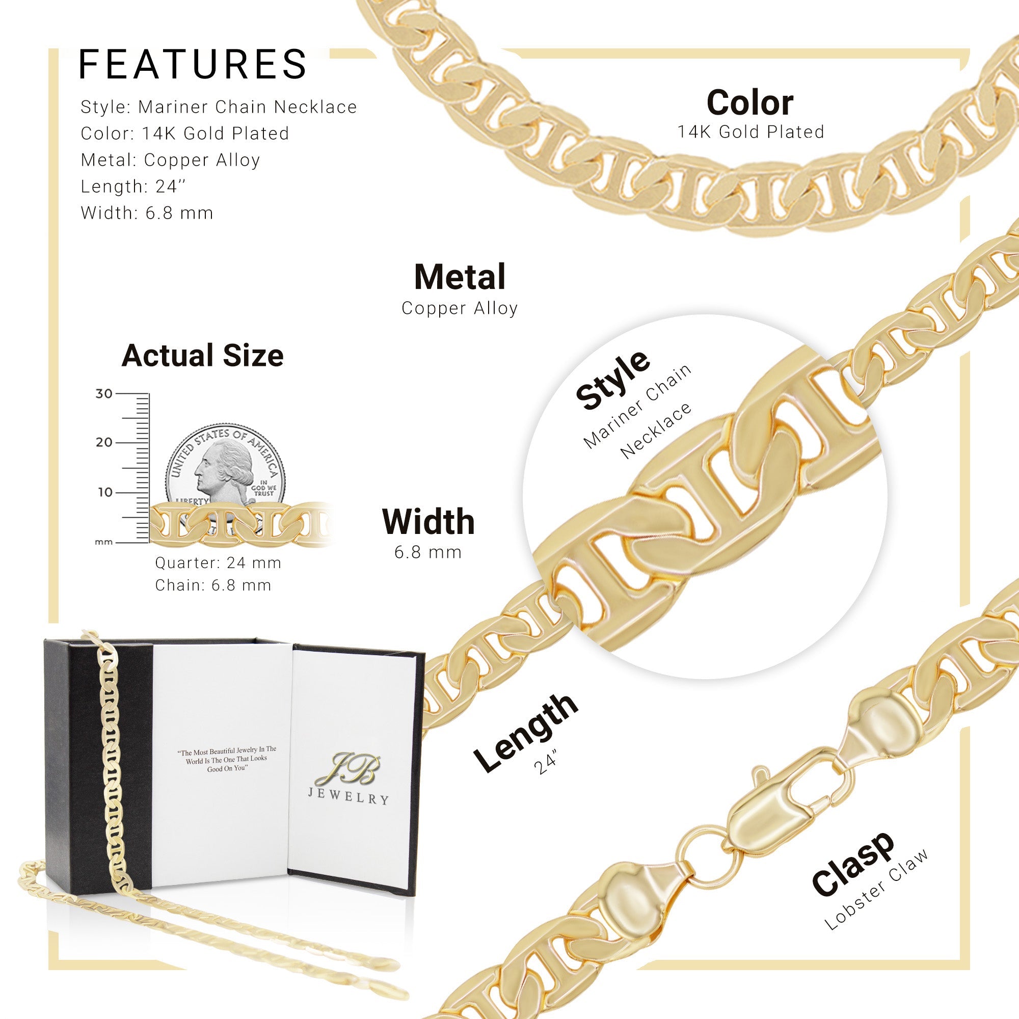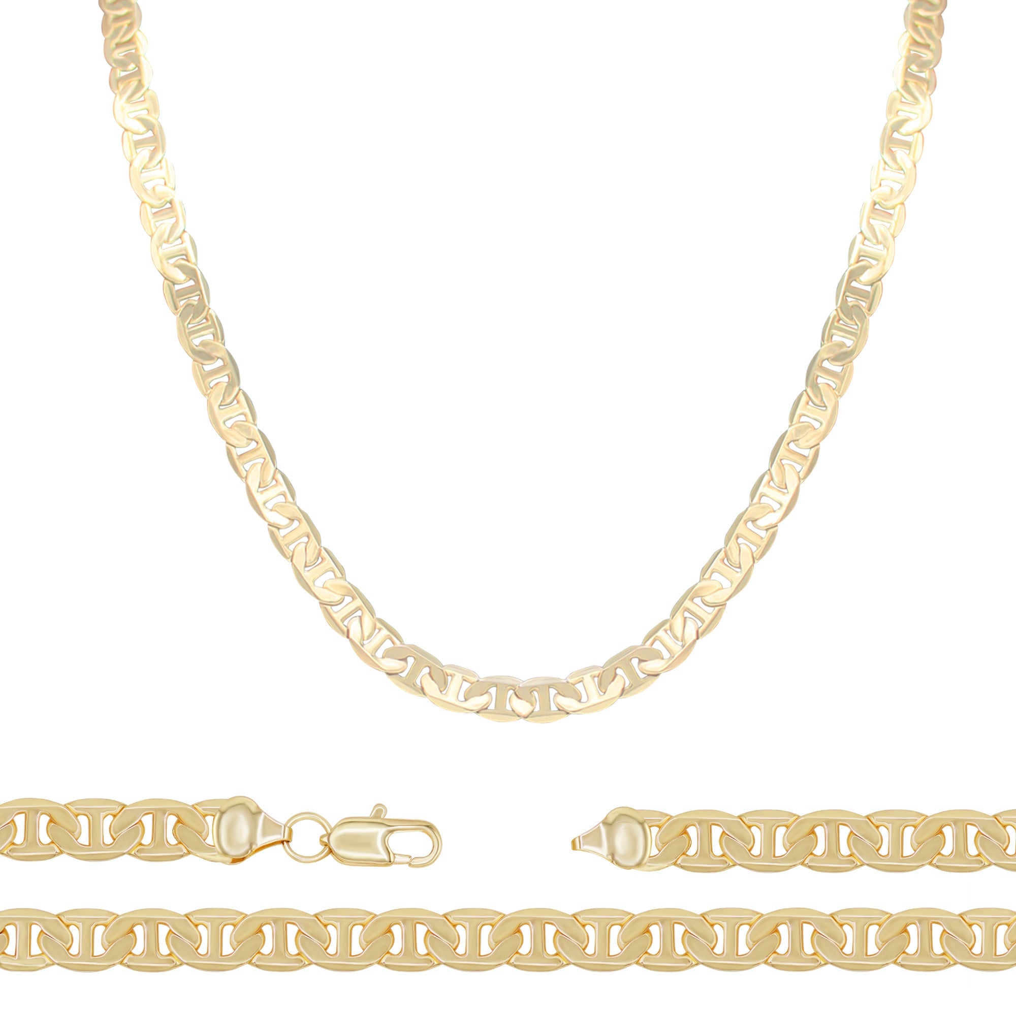Constructed with solid 14K Gold Filled copper with high polished shiny surface, our Mariner chains resist tarnish, hypoallergenic, nickel free, and safe for sensitive skins